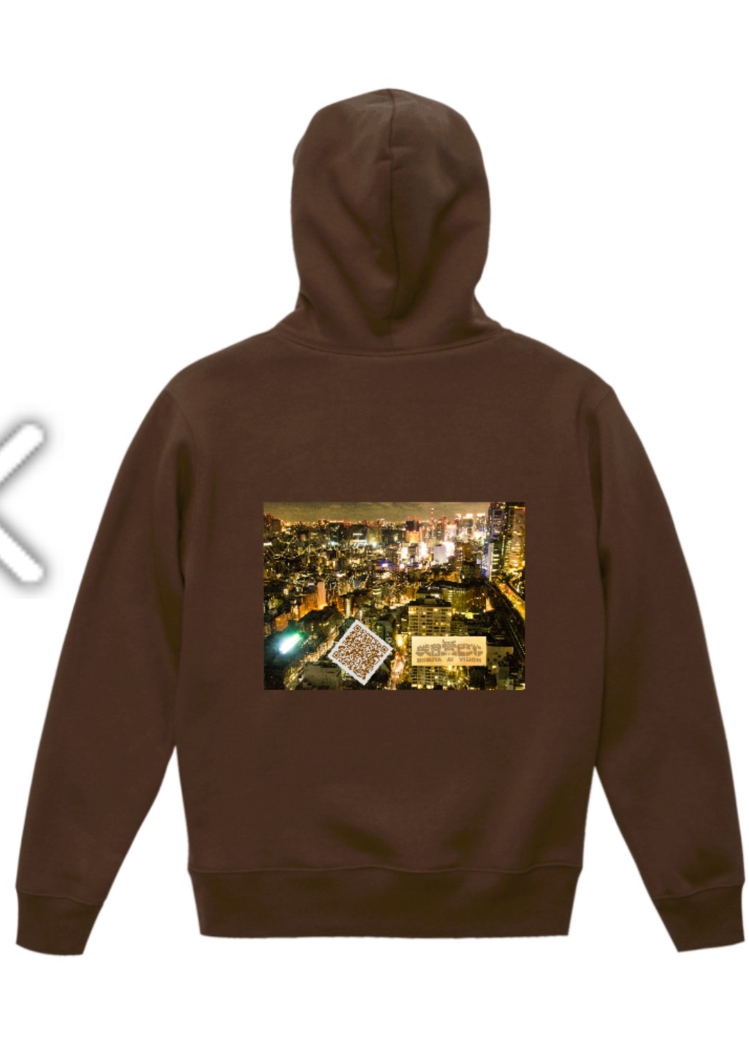 裏面に、愛が溢れるキラキラした、見ていると幸せになる渋谷のゴールドの夜景に、QRコードが浮かぶ。